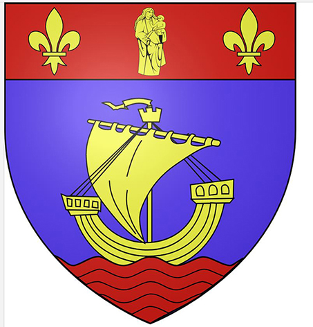 D'azur à la nef d'or voguant sur une mer de gueules, au chef cousu du même chargé d'une Notre-Dame d'or accostée de deux fleurs de lis du même.